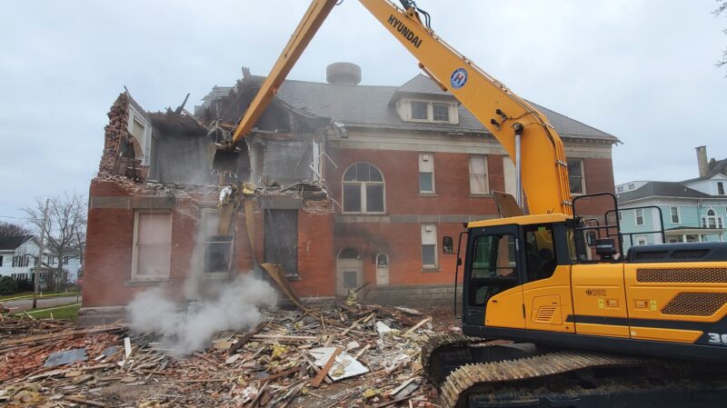 The former East Street School in Warren is on its way to the ground.