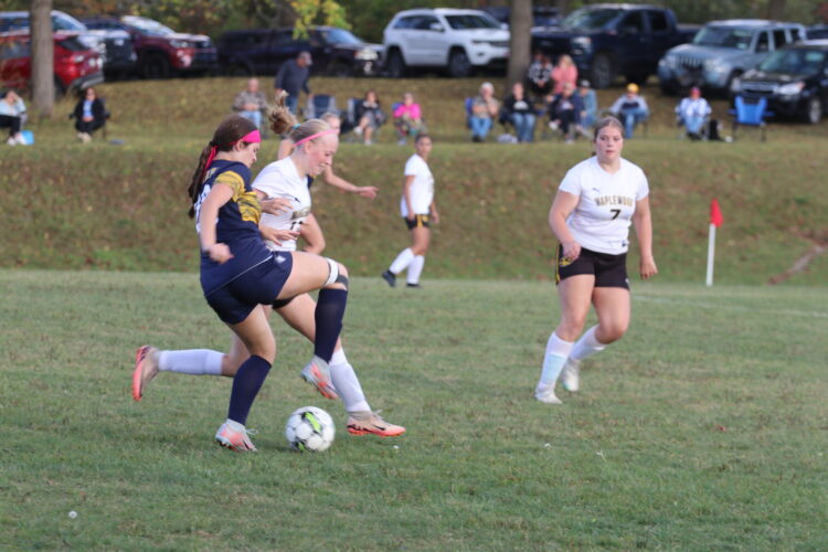 RUSSELL — It took almost 96 minutes for a goal to be scored in Wednesday’s girls soccer game, but Eisenhower’s Roasalie Rondeau connected on a shot just inside the left corner post to give the Knights a 1-0 win over Maplewood.