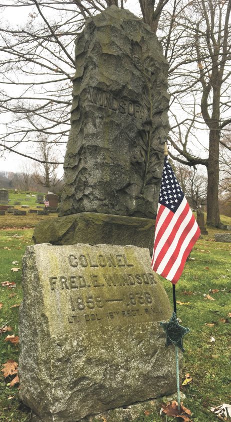 Times Observer photo by Josh Cotton/Photo courtesy of the Warren County Historical Society Above, Windsor purchased this plot of land at Oakland Cemetery when his mother died in 1906. In addition to Windsor, his parents and an aunt are the only family members buried there, according to the Waren County Historical Society. At left, a late in life photo of Col. Windsor at what we now know was Soldiers & Sailors Park in downtown Warren.