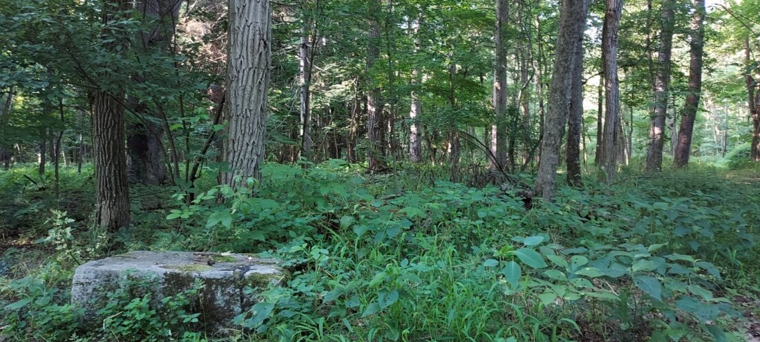 Like I wrote in the story on the tour, there’s some fence posts left, some field stone, a slight indent in the ground where the mansion was, the icehouse and one single flower that was possible where a garden was once located.