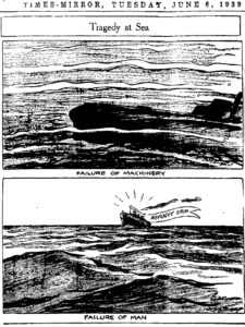 Photo from the Warren Times Mirror A scathing editorial cartoon comparing responses to submarines and the St. Louis, which carried over 900 mostly Jewish refugees, on a heart-wrenching voyage in 1939.