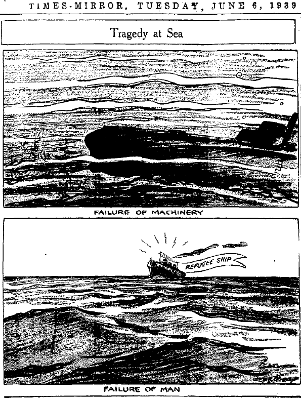 - Photo from the Warren Times Mirror A scathing editorial cartoon comparing responses to submarines and the St. Louis, which carried over 900 mostly Jewish refugees, on a heart-wrenching voyage in 1939.