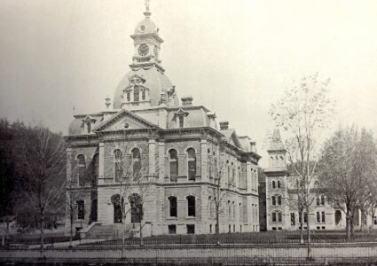 Photo from Warren Centennial An 1895 look at the courthouse. The building on the right was the county jail.