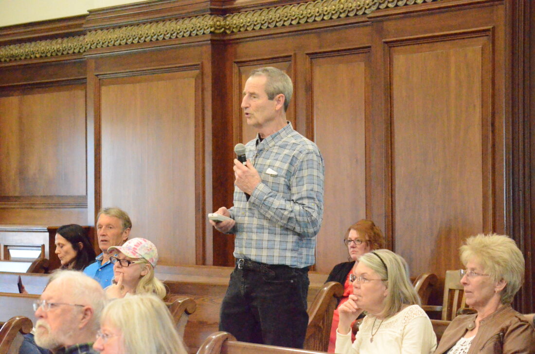 Times Observer photo by Josh Cotton The founder of the project, Bob Johnston, speaks during a Warren County Historical Society talk on the project held this week.