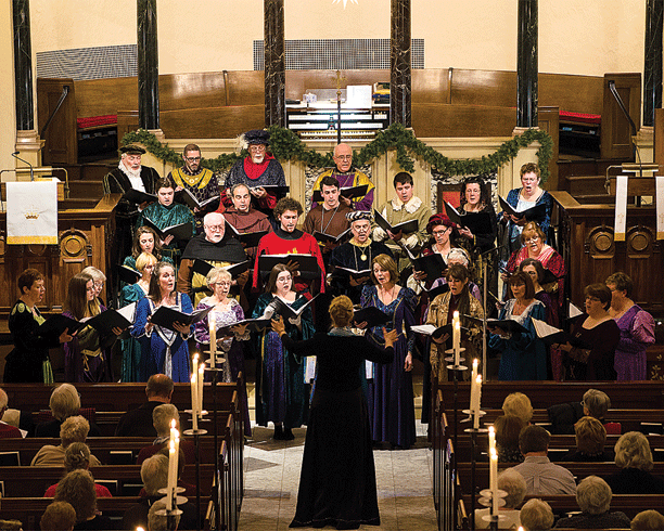 The costumed Chautauqua Chamber Singers processing in candlelight, with a bagpipe prelude, and supported by traditional readings, will perform choral music both new and old.
