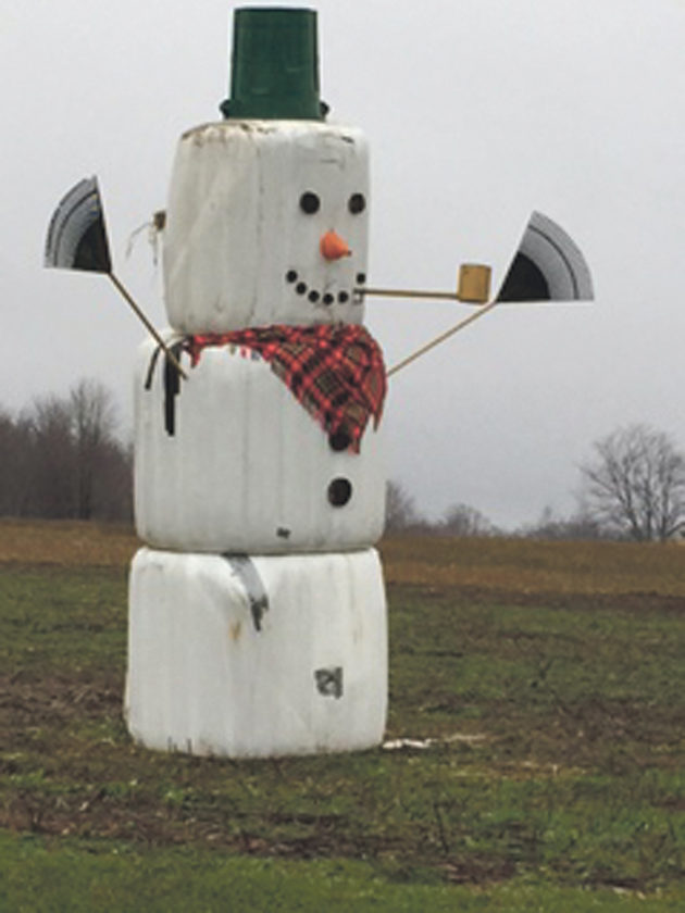 Jim and Vicki Stec have started a trend. Last year, the couple decided to celebrate the season by building a hay bale snowman. This year, the snowman building has become a “friendly competition,” as their neighbors Larry and Connie Upton decided to join the fun. Uptons’ snowman this year includes the addition of snow children. is year. “People drive by to see it, they stop and take pictures,” said Vicki. “We welcome them to stop by and take their pictures with them,” she said.