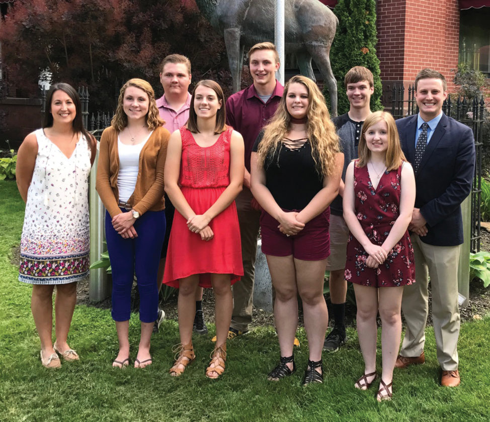 Photo submitted to Times Observer From left, in front, are Jenny Phillips, Zavinski scholarship committee member, and recipients Madison Marino (Youngsville), Clarice Pierson (Sheffield), Taige Honhart (Warren), and Hannah Bortz (Eisenhower) and, in back, recipients Nick Giambrone (Warren), Spencer Gray (Eisenshower), Brady Kesterholt (Youngsville) and Caleb Gnage, Elks Club member. Missing from the photo is recipient Kole Holden (Sheffield).