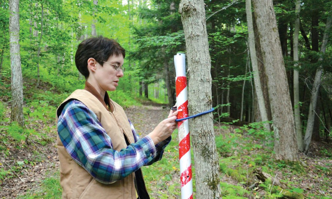 Photo submitted to Times Observer Jean Gomory, Watershed Specialist with the Warren County Conservation District, sets up the Four Season Trivia Quest, part of Chapman State Park’s Labor Day Weekend programs. Quest participants will follow Penny Run Trail and find nature-related trivia questions and answers along the way. Other programs include a Nature Scavenger Hunt on Saturday at 3 p.m.; a Chapel Service Sunday at 10 a.m.; Introduction to Geocaching, Sunday at 4 p.m.; and, on Monday, a Camouflage Walk (discovering hidden bugs and animals) at 11 a.m.; and Fish Cleaning for Beginners at 3 p.m. that day.