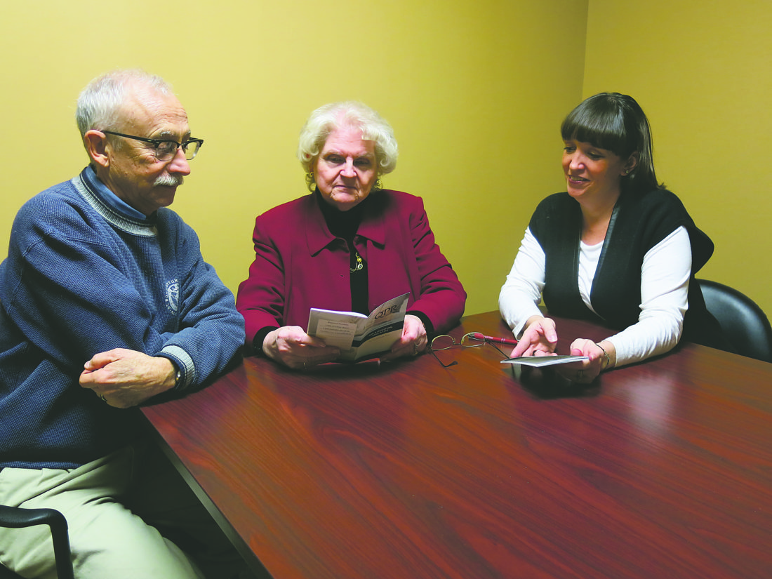 Gary Lester (right) and Dorothy Hilliard (center) discuss QPR with trainer Kari Swanson.