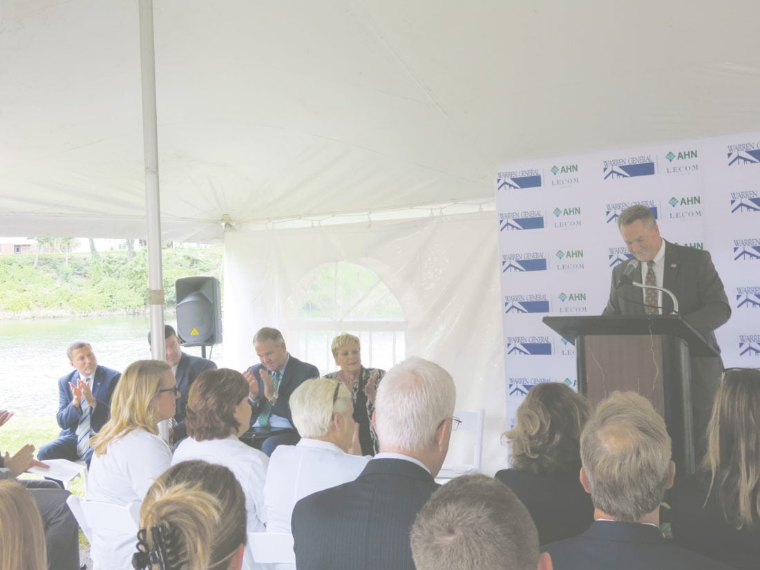 Times Observer photo by Stacey Gross Rick Allen, Warren General Hospital CEO, addresses a crowd, including Allegheny Health CEO and President Cynthia Hundorfean, Highmark Senior Vice President Tom Fitzpatrick, and President and CEO of St. Vincent Chris Clark.