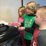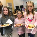 Photo submitted to Times Observer On Friday, Warren Area Elementary Center (WAEC) students in Mrs. Leach’s, Mrs. McGraw’s, and Mrs. Knupp’s class hosted a Thanksgiving brunch for their friends who participate in the Building Buddies program. The program, in its second year, pairs students in the Life Skills classes with peers to foster friendships throughout the building. Students, with the help of the faculty and staff created a feast of scrambled eggs, pancakes, sausage, French Toast casseroles, cookies, and breads. The tables were festively decorated with crafts students made for the feast. Sounds of laughter and chatter could be heard at each table as the groups of buddies interacted and continued developing in their friendships. As kids were sent back to classes for the remainder of the day, farewells of “have a good weekend,” and “thanks for having lunch with me” were heard and lots of hugs were given. Above, Emily Wiles helps her friend Colton Ristau with his plate as they move through the food line. Below, Ryder Check and Lacey Myers pose together while they wait to be called into the food line. At bottom, Addison Leach, Sophie McCracken, and Alivia Hoffman pose with their plates piled with breakfast goodies.