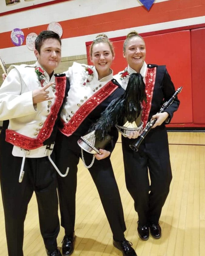 Photo submitted to Times Observer Youngsville Marching Band seniors were recognized at their Halftime Review Show held recently at Youngsville High School. The marching band performs this show for the last time for family members as well as the community. Special awards are given as well as recognition of the seniors since we no longer have a football team with a Homecoming event. Seniors, from left, are Lucas Miller, son of Jeff and Paula Miller; Elizabeth Lucks, daughter of Charlie and Natalie Lucks; and Jocelyn Taydus, daughter of John and Kim Taydus.