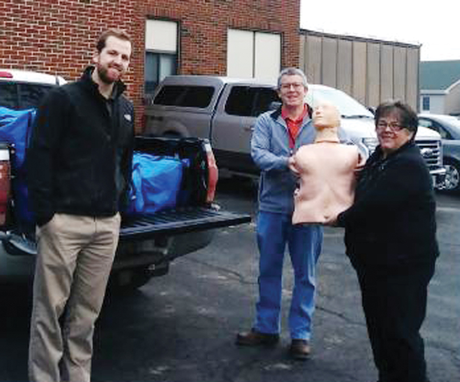 Photo submitted to Times Observer Jesse DeLoof and Donna Smith of Warren H-Ed accept CPR training equipment from Scott Rose, deputy director of emergency management of Warren County.
