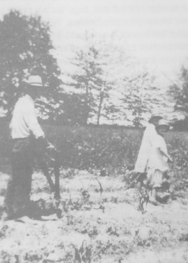“My father had a large vegetable garden but no horse, just a hand plow. One time, just for fun, he hooked my brother (that would be my Grandpa Don) and I up to the plow with a rope, but I’m not sure how much help we were in plowing the garden.”