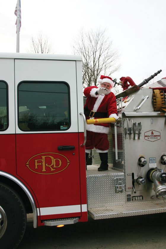 Photos submitted to Times Observer Santa is arriving at the Russell “Hometown Christmas” event on a Russell Volunteer Fire Department fire truck. Photo by Steve Horsley.
