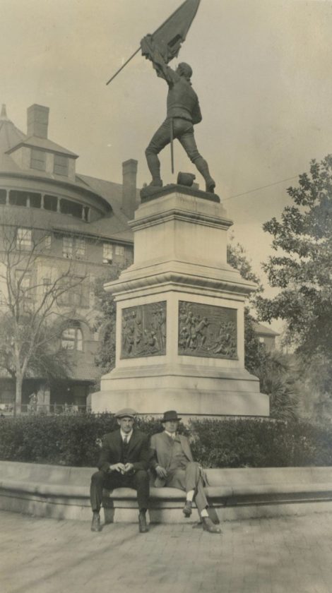 These photos are dated 1915 and presumably show members of the Hertzel family. They were taken at a Revolutionary War monument and then a Confederate monument in Savannah, Georgia which still stand.