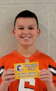 In addition to recognizing 217 students who earned the Merit Honor Roll and 167 students who earned the Honor for the First Marking Period, Beaty-Warren Middle School recognized Mason Warner (fifth grade), Broc Bryan (sixth grade), Brynn Norris (seventh grade) and Lilly Newton (eighth grade) for earning the highest GPA in their respective grade levels.