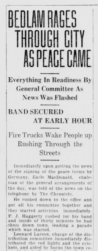 - Photo from the Nov. 11, 1918 Warren Morning Chronicle Celebration was the order of the day when news of the armistice ending the Great War started to percolate through Warren.