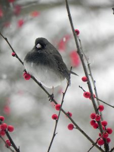 Photo by Jeff Tome Dark-eyed Juncos are a common sight at birdfeeders, but most have migrated from further north to spend the winter in our area.