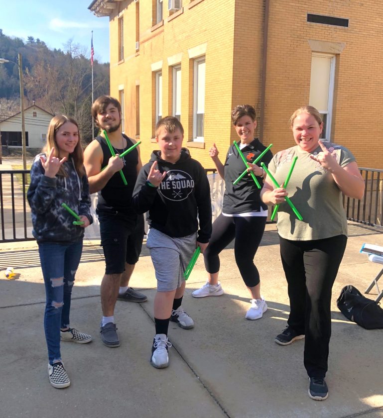 Photo submitted to Times Observer Members of the Tidioute Community Charter School Pound Rockout Workout Club include (from left) Hanna Cox, Hunter Christiansen, Tyler Blakeslee, Kate Borland, and Pound Instructor Sara Robinson.