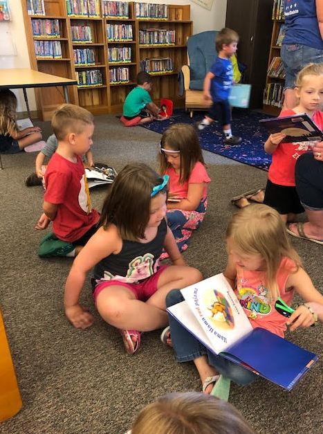 - Rouse preschool children stopped by Youngsville Library for their monthly Storytime visit with Kristy Wallace, library director. This month’s topic was “Opposites.” Children heard stories, did activities, had a snack and even had time to ‘partner read’ books with a peer (shown).