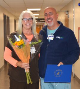 Photos submitted to Times Observer Warren General Hospital Respiratory Therapist Kimberly Mast, with Chief Nursing Officer Joe Akif, is the fourth winner of the Being Exceptional Every day (BEE) Award at the hospital.
