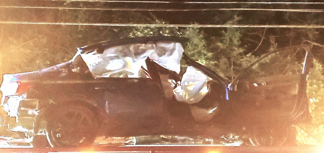The heavily-damaged Honda sedan with Pennsylvania plates was removed from the scene at about 10:30 p.m.