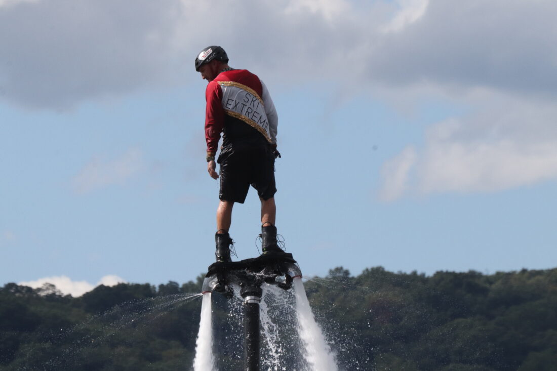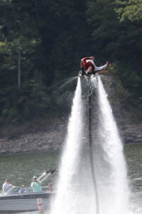 From the opening moments, festivalgoers were treated to water stunts and championship‒level performances that launched Kinzua Rocks the Wake. Ohio’s Chippewa Lake Water Ski Show Team performed with precision formation skiing, synchronized pyramids and aerial tricks. Wisconsin’s Ski Extreme Productions performed flips, spins, jet‒ski acrobatics, and flyboard theatrics up to 75 feet in the air while onlookers from boats and on the shore watched.