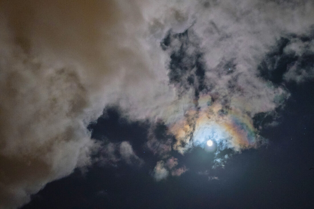 - Photo by Jeroen Hermkens A moonbow photographed as storm clouds roll in.