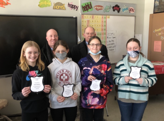 At the end of the marking period, Pennsylvania State Police Trooper Jeffrey Osborne and Cpl. Jason Wagner visited the club, and made a presentation to winning team members Lexi Gulnac, Jenna Kophazy, Sara Richard, Chalina Abreau, and Sierra Craig.