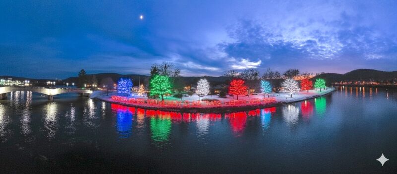 An old Christmas tradition is getting a new twist this year with the addition of LED-wrapped trees behind the “Warren Wishes You Merry Christmas Happy New Year” sign along the Allegheny River at Crescent Park.