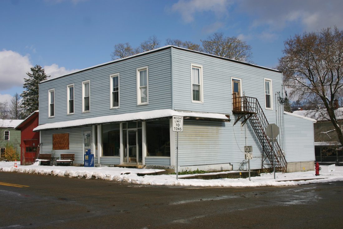 Main St. (old US Route 62) runs north and south, while Liberty St. runs east and west, with the Conewango Creek to the east and the blinking yellow light on new Route 62 to the west. The first hotel in Russell was built on the northwest corner of Main and Liberty Sts. by Lansing Wetmore in 1820. The structure was wood, thus susceptible to fire. In 1824, the hotel was destroyed by fire. Unfortunately, it would be almost a century before there was an organized fire department in Russell. However, a new hotel was immediately rebuilt by Marshal Jones that same year.
