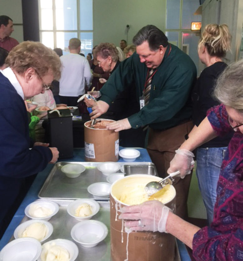 Photos submitted to Times Observer Tidioute School students in grades K4 to grade 6 were treated to an Ice Cream Social last week as a thank you for bringing so many items in for the VFW Auxiliary Troop Boxes. Dr. Allen, in the shirt and tie, pitched in to help serve the ice cream.