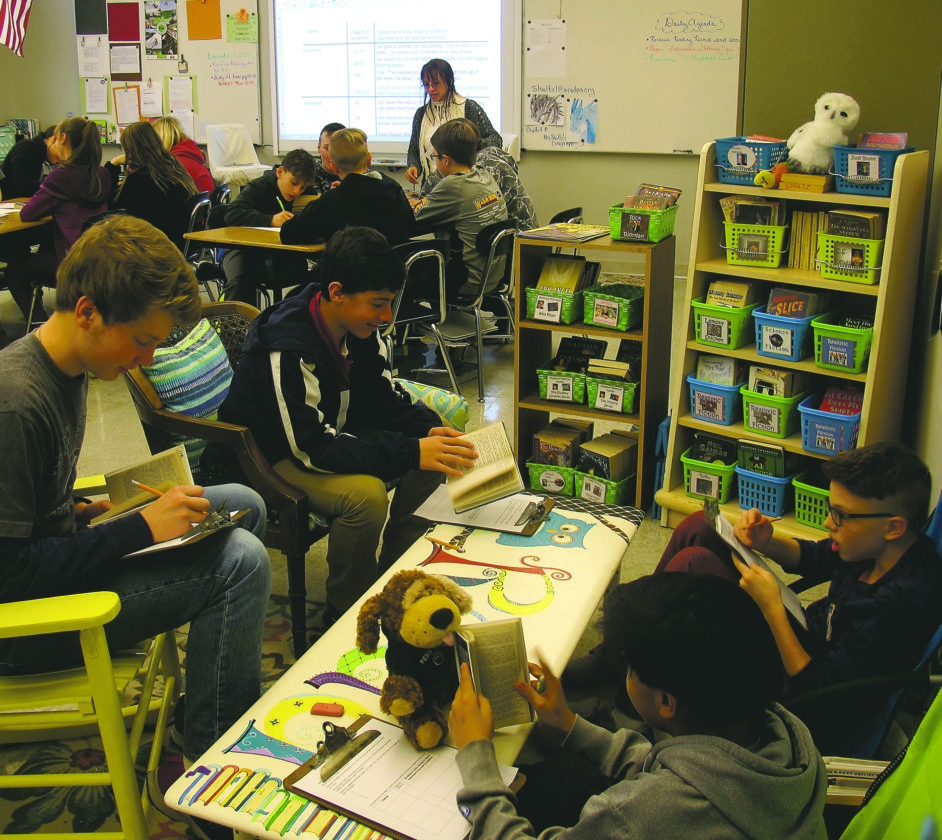 Students in Beaty-Warren Middle School English language arts teacher Lynn Shultz’s class work at stations. In the foreground is the Book Nook Station. Shultz shared information about utilizing stations in a middle level setting at the Association for Middle Level Education conference in November.