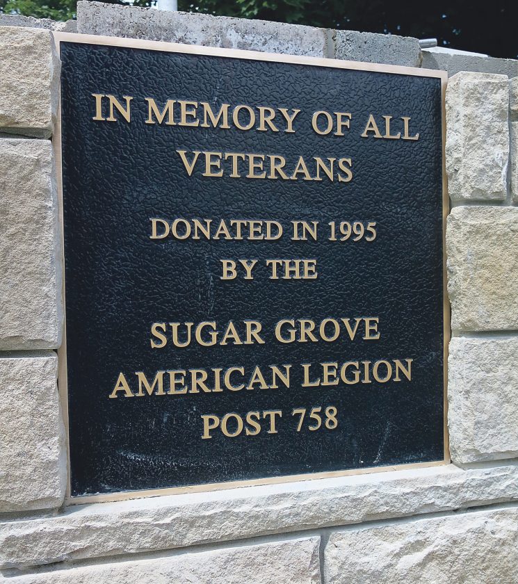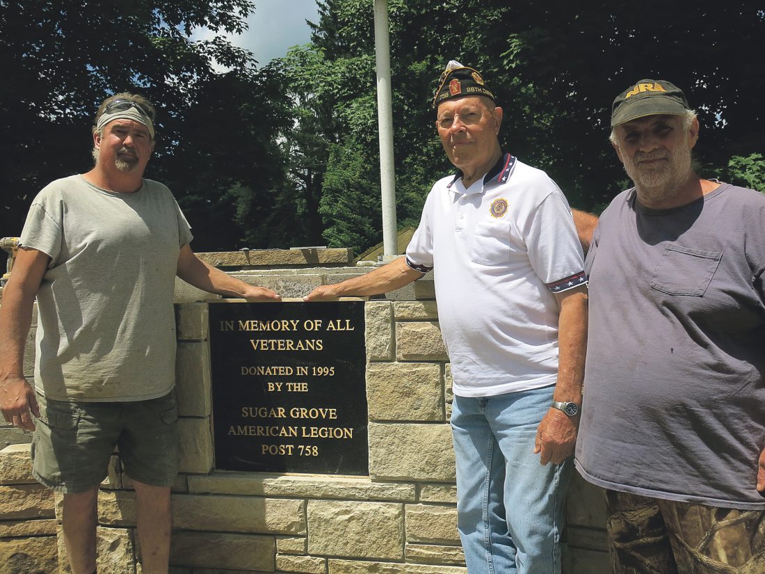 - Times Observer photo by Brian Ferry As the memorial plaque is placed back in the veterans monument in Sugar Grove by a crew from Roger Luvison and Son of Youngsville, Luvison’s Mark Bryerton, Wes Wilcox of Sugar Grove American Legion Post #758, and Jef Luvison gather for a photo.