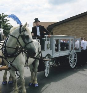 Times Observer photo by Brian Ferry Pall bearers load the casket bearing the body of Jerry Borden into a horse-drawn carriage following the funeral Wednesday at Sheffield United Methodist Church.