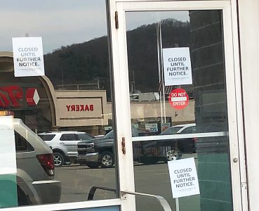 - Times Observer photo by Jon Sitler “Closed until further notice” signs at Warren’s “Wine & Spirits” state liquor store since March 17.