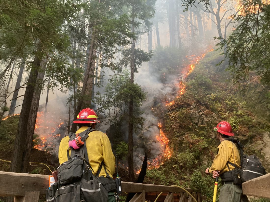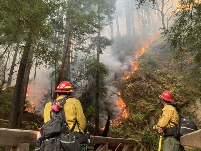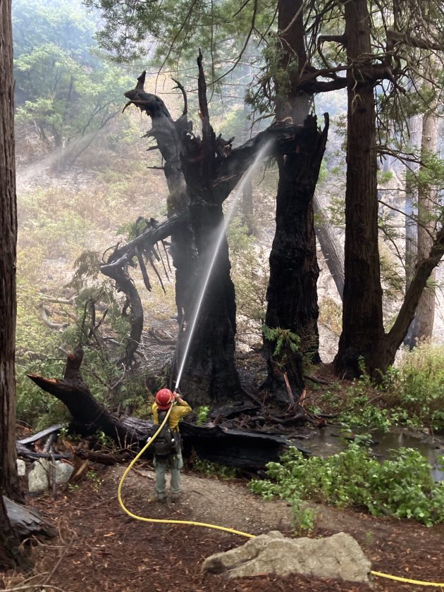 “A good portion of the time we were protecting the buildings and infrastructure at Julia Pfeifer Burns State Park which included a small burnout operation in a redwood stand,” he said. “Redwood trees are fire adapted species that thrive after moderate to low intensity fires go through them.”