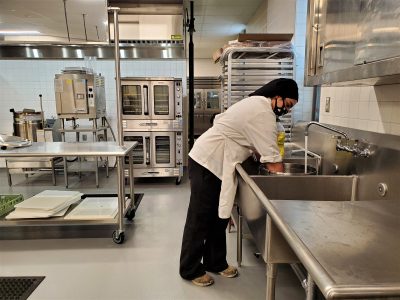 Times Observer photo by Brian Ferry Savannah Naquin washes up in the Warren County Career Center’s new Culinary Arts and Hospitality kitchen.