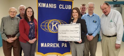 - Photo submitted to Times Observer Kiwanis Club of Warren in March 2020 contributed $2,000 to the Warren Public Library’s Access, Improvements, and Teen Space Renovation project. From left are Kiwanis members Charles Merroth, Jim Hookins, Miranda Collingwood, Warren Library Executive Director, and Kiwanian Kelli Knapp, board members Brian Kenworthy, John Kersey and Richard Swanson. Funding was made possible by Kiwanis programming such as the blood screening and spaghetti dinner.