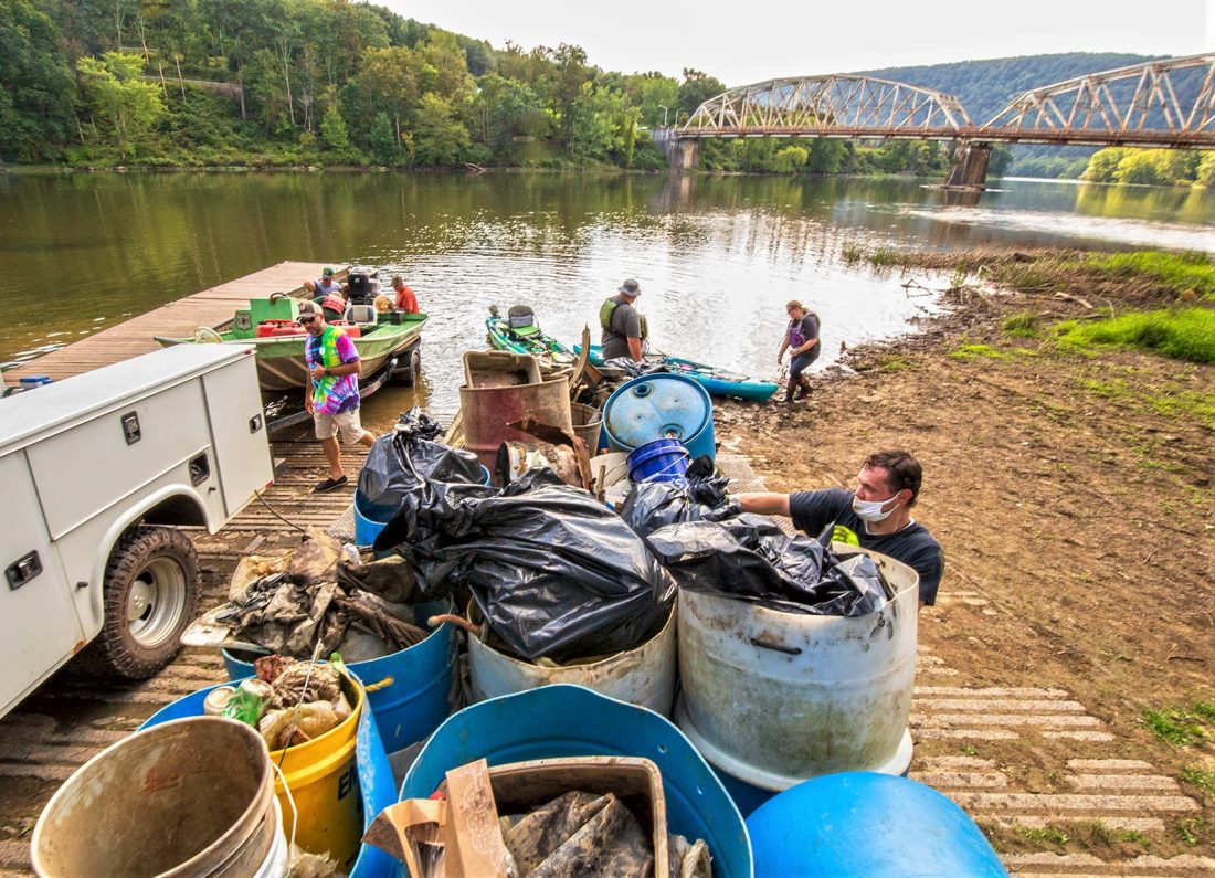 Volunteers at Tidioute wrap up a day of the 2021 Allegheny River Cleanup operation.