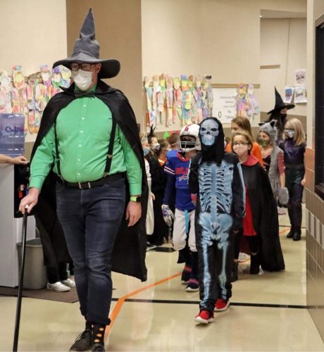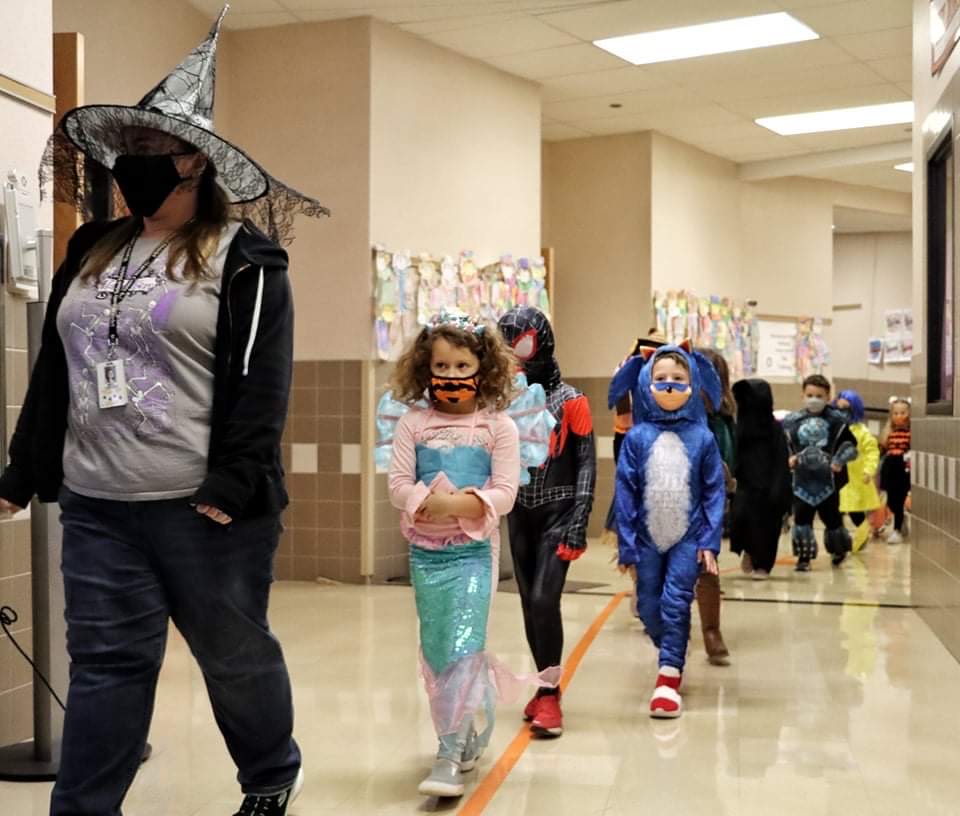 Friday was Halloween Parade day in schools across Warren County. At top, Tauni Lindsey’s kindergarteners take part in a parade at Sheffield Elementary School. Inclement weather forced some schools to push the parade indoors.