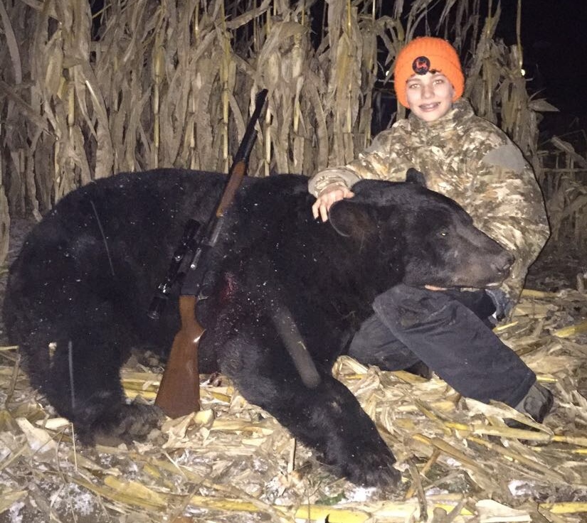 Ryan Fitzsimmons, 15, harvested this 556-pound bear Monday after school near Scandia. He bagged the bear using his great-grandfather’s 35 Remington.