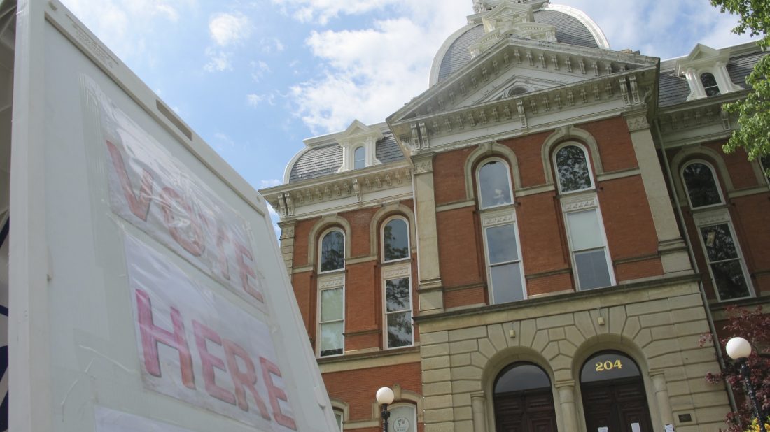 Times Observer file photo Polls for Tuesday’s municipal election will be open from 7 a.m. to 8 p.m. including, here, at the Warren County Courthouse where citizens in the Warren Central precinct cast their votes.