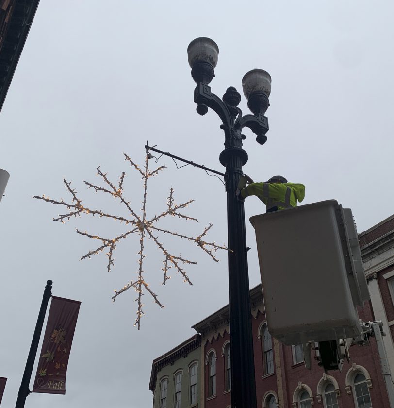 Christmas might still feel a ways away but it’s certainly starting to feel like winter in Warren County. The first public decorations went up as City of Warren Department of Public Works staff installed these lights on downtown light poles Wednesday morning.