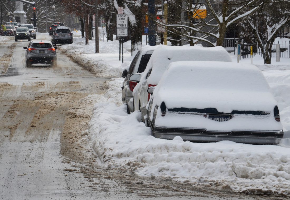 Times Observer photo by Brian Ferry Heavy snows can make it easy to pick out which cars — like these on Hickory Street — haven’t moved and make it hard to get around the City of Warren. City officials plan to begin enforcing a 72-hour parking limit on city streets.