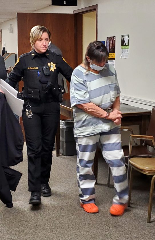Times Observer photo by Brian Ferry Brenda Gibson, accused of stealing over $800,000, is escorted out of Courtroom B at the Warren County Courthouse on Thursday after a preliminary arraignment.