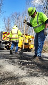 A crew was out cold-patching potholes Monday. As usual, the winter’s freeze-thaw cycle was not friendly to Warren County’s roads.