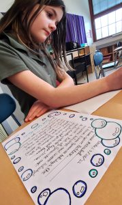 Times Observer photo by Brian Ferry Annabel Smith starts writing a letter to her pen pal, Maria, in Valladolid, Spain, after the class received the latest round of letters.