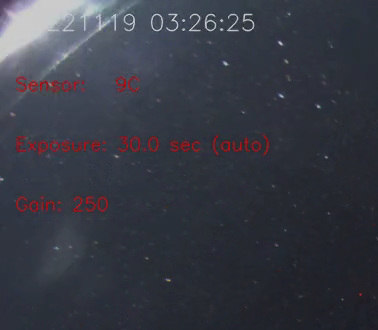 The flash from the asteroid can be seen in the very corner of the observatory’s AllSky Camera. A video of the day’s capture is posted on the Martz-Kohl website — martzobservatory.org — under Observing, Control Room, AllSky Cam. The flash can be seen in a clear sky at about 3:25 a.m. on the recording of the night of Nov. 18. Thin clouds cover the skies over the observatory just an hour after the event.